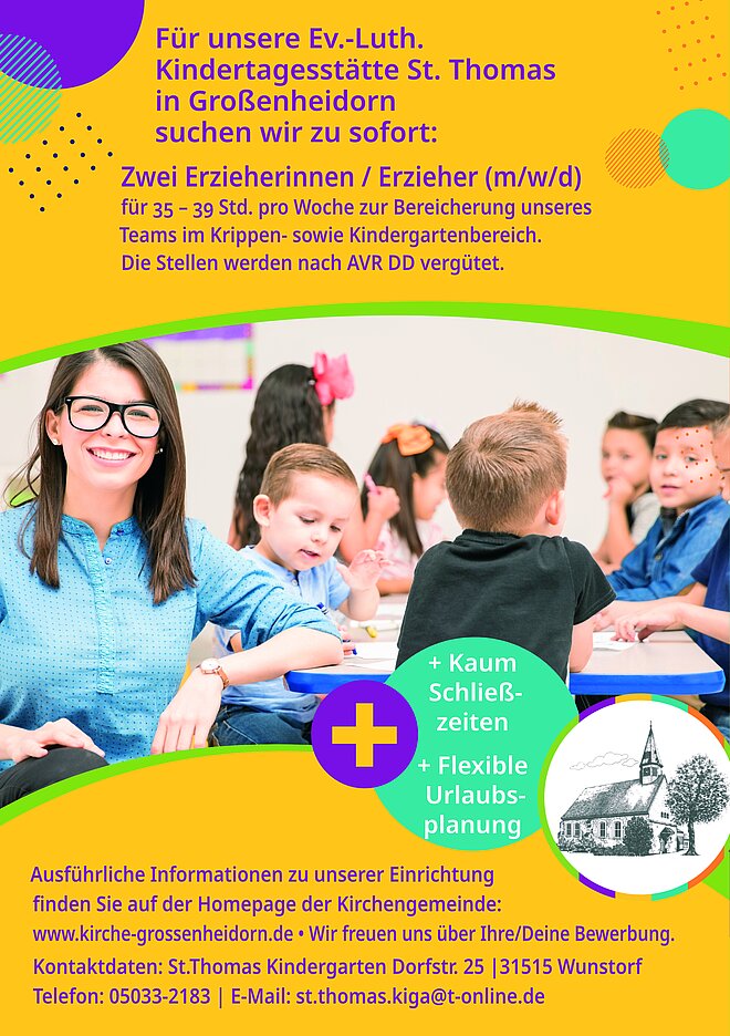 Seit 1994 unterhält die Kirchengemeinde den evangelischen St. Thomas-Kindergarten.
