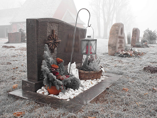 - Rasen-Einzelgrab oder Rasen-Doppelgrab mit kleinem Pflanzbeet