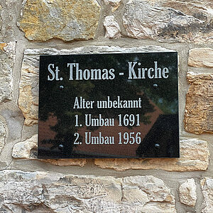 Weil es Hinweise darauf gibt, dass der Kapellenbau dem Apostel Thomas geweiht war, erhielt unsere Kirche anlässlich ihres 300-jährigen Bestehens im Jahr 1991 ihren heutigen Namen: St. Thomaskirche.